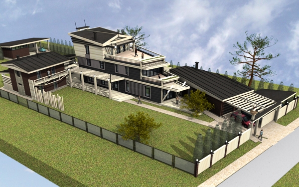 одной семьи. Это будут собственно жилой дом в 3 этажа, баня с гостевыми